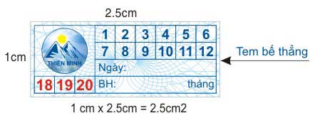 b. Tem bảo hành bế thẳng, kích thước 1cm * 2.5cm: