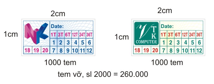 2. Kích thước tem bảo hành cần in. Vd: 1x2cm, 1×1.5cm,…