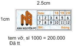 – Sau đó quý khách so bảng giá hàng 2.5cm2, cột 1000 tem = 200.000 vnđ.